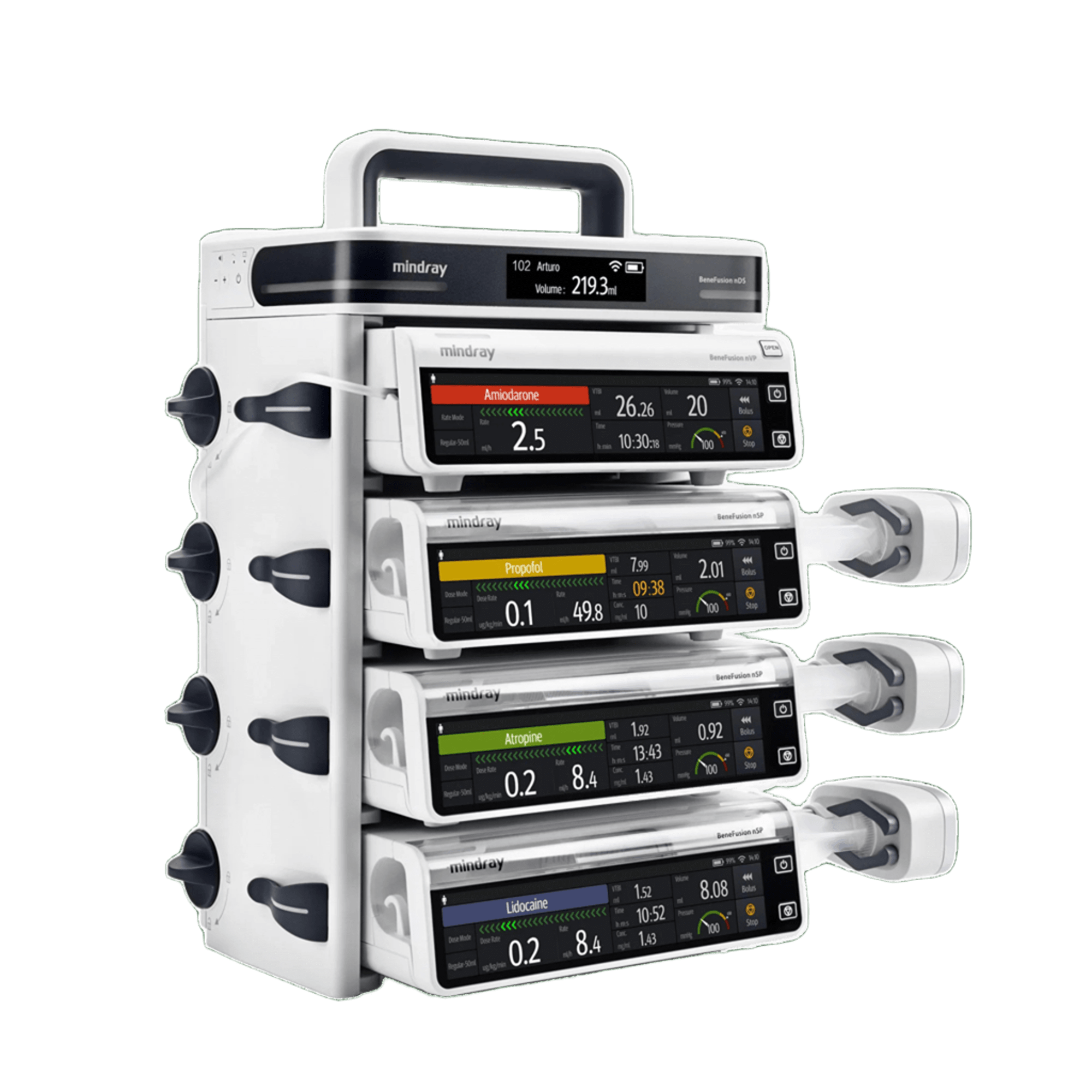 Док-станция (инфузионная станция) бренда Mindray, предназначенная для управления несколькими насосами (шприцевыми и волюметрическими). Соединяет насосы в одну сеть, предоставляя доступ к центральной станции.