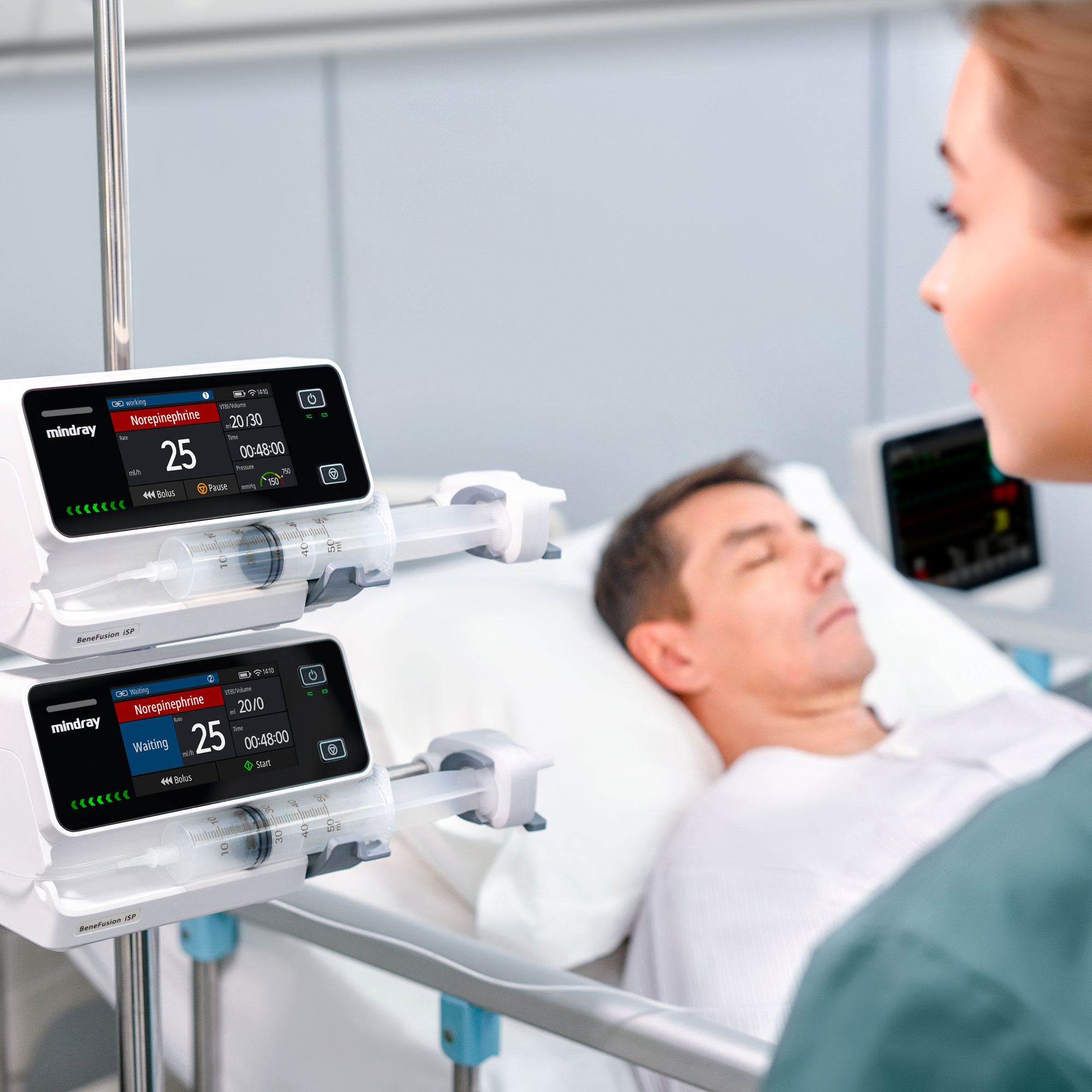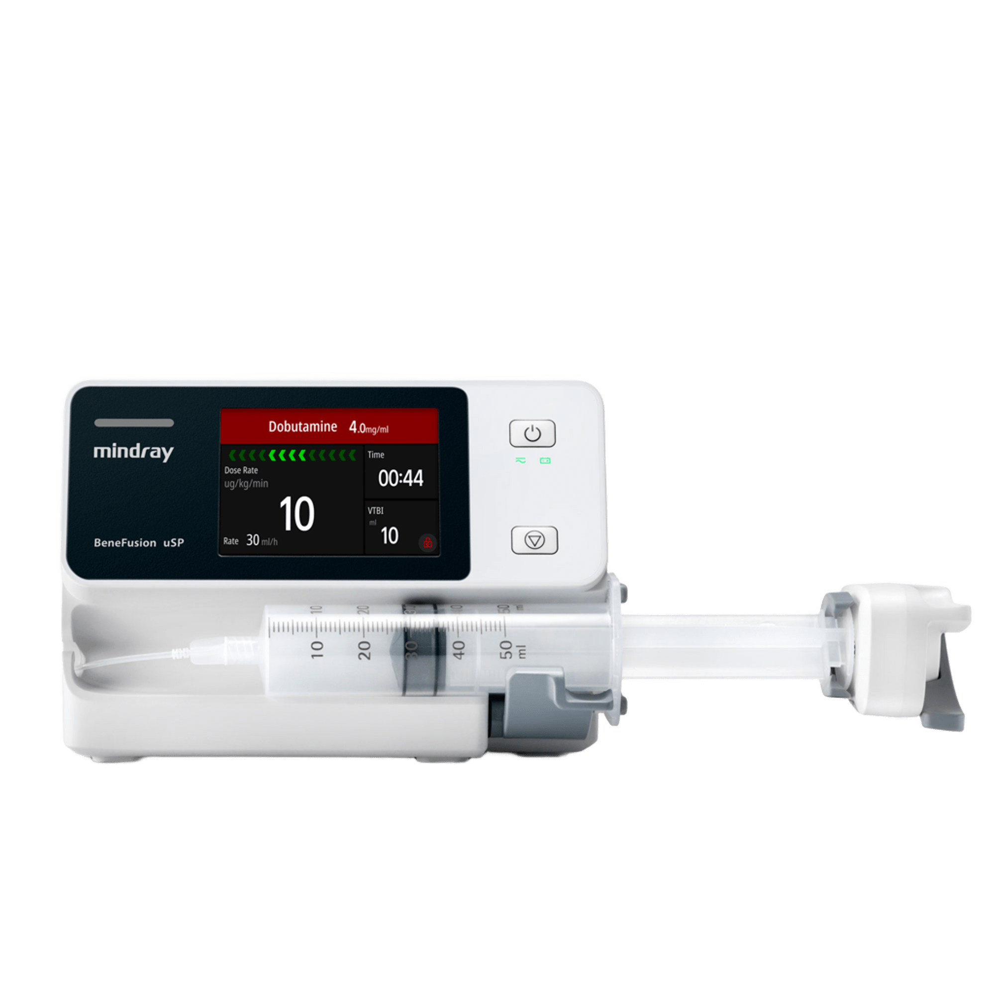 Инфузионный шприцевой насос производителя Mindray, входящий в серию BeneFusion u. Предназначен для контролируемого внутривенного или внутриартериального введения лекарственных препаратов, инфузионных растворов, липидов, парентерального питания.