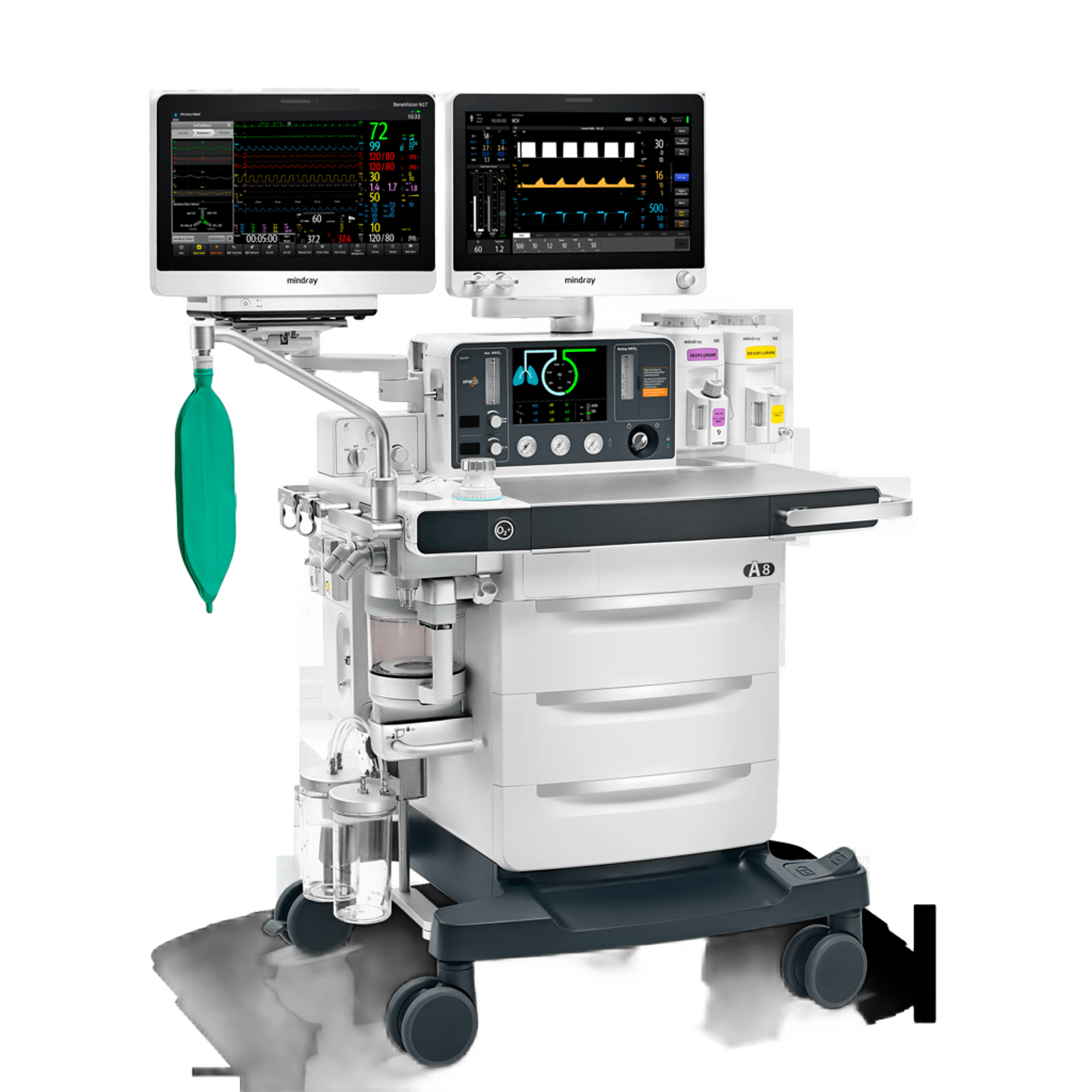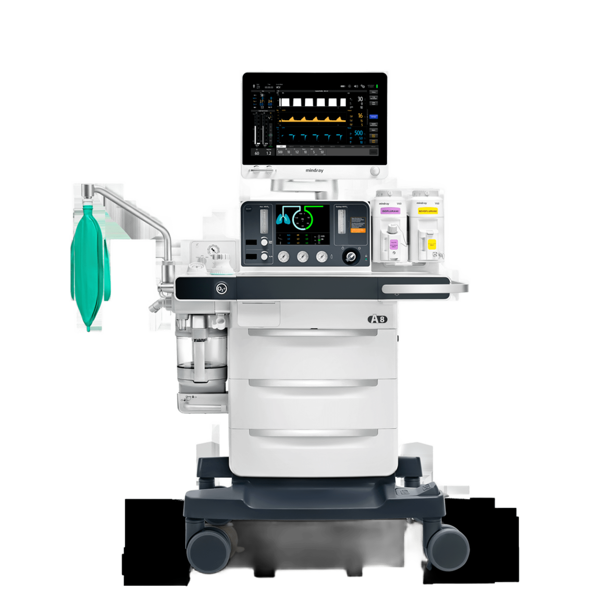 A8 использует газоообменное устройство (VE) в качестве инновационной дыхательной системы, помогая обеспечивать чрезвычайно точную и надежную вентиляцию.