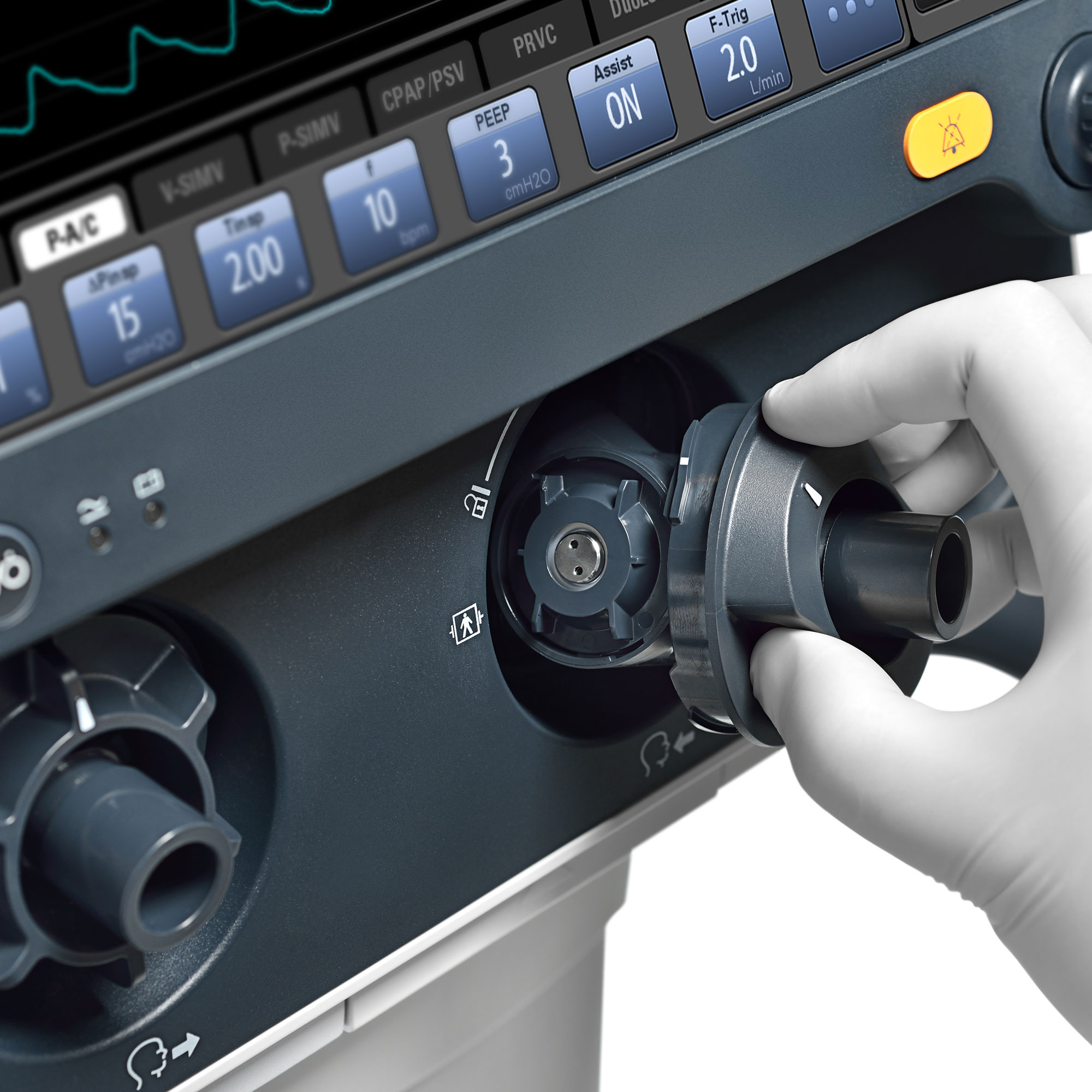 - Клапаны вдоха и выдоха сконструированы таким образом, что их замена и чистка больше не вызывают трудностей благодаря возможности автоклавирования. Это позволяет значимо снизить риски кросс-контаминации в ОРИТ.