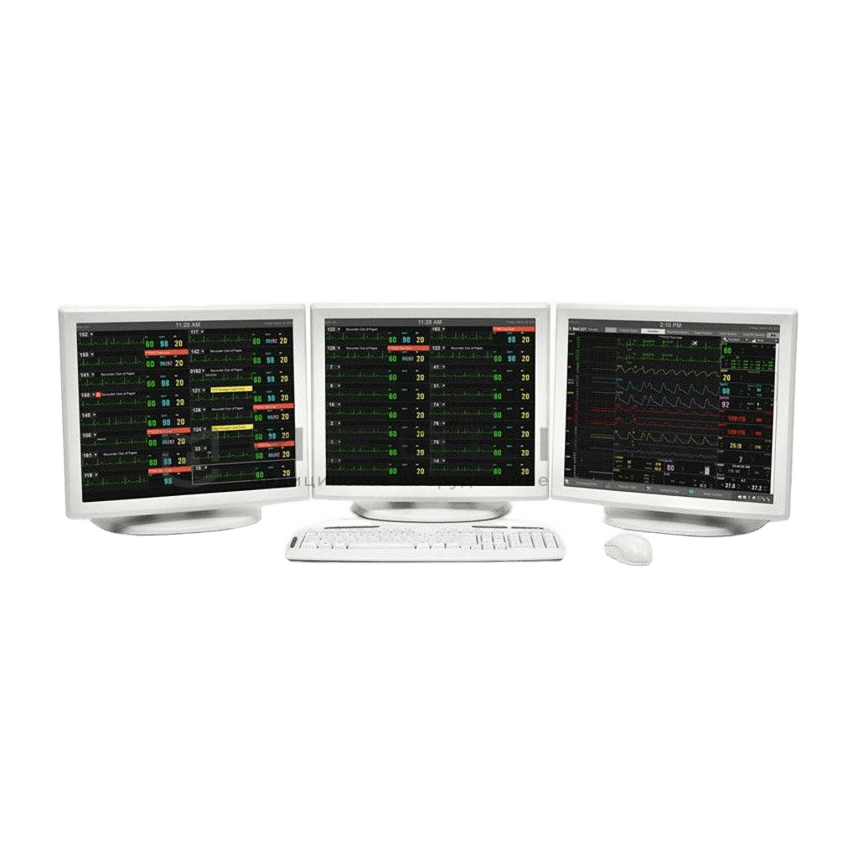 - Возможность наблюдения пациентов в разных отделениях. Рабочая станция (WorkStation) может одновременно подключаться к центральным станциям различных отделений, позволяя быстро просмотреть данные всех пациентов.