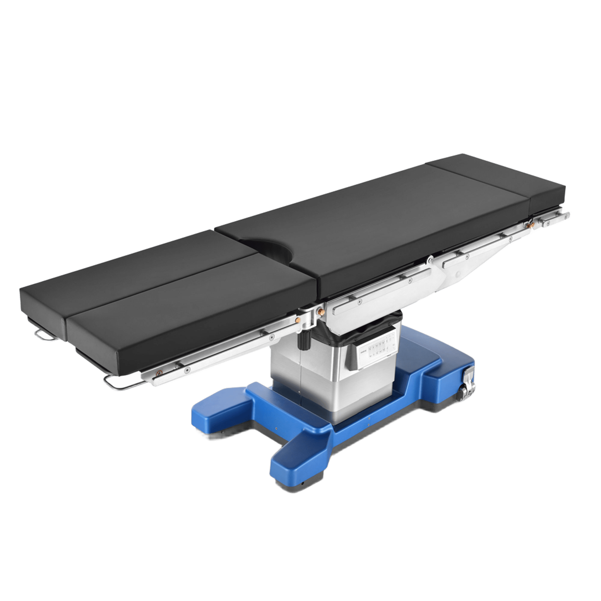 - Электрогидравлический привод: обеспечивает активацию и деактивацию тормозной системы, а также регулировку подъёма и опускания спинной секции, боковых наклонов, положения Тренделенбурга и обратного положения Тренделенбурга, подъёма и опускания столешницы, продольного сдвига (опция), нулевого положения, позиций flex и reflex.