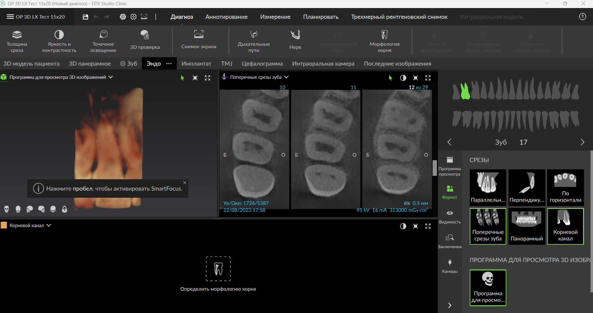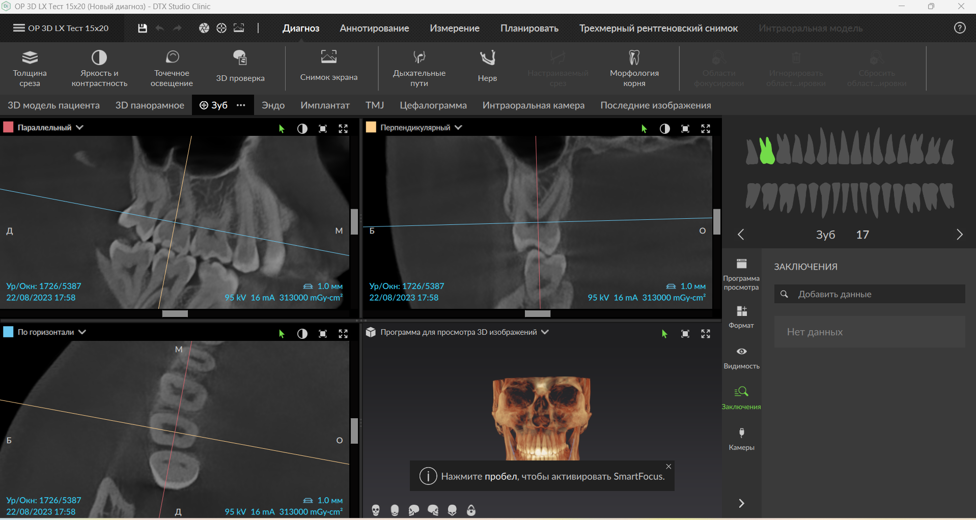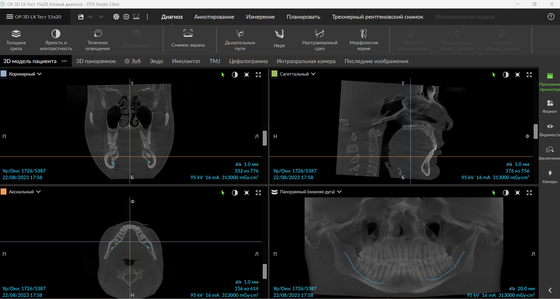 - 4 варианта разрешения при 3D-съёмке (режим низкой дозы (LDT), стандартное, высокое разрешение и режим эндо).