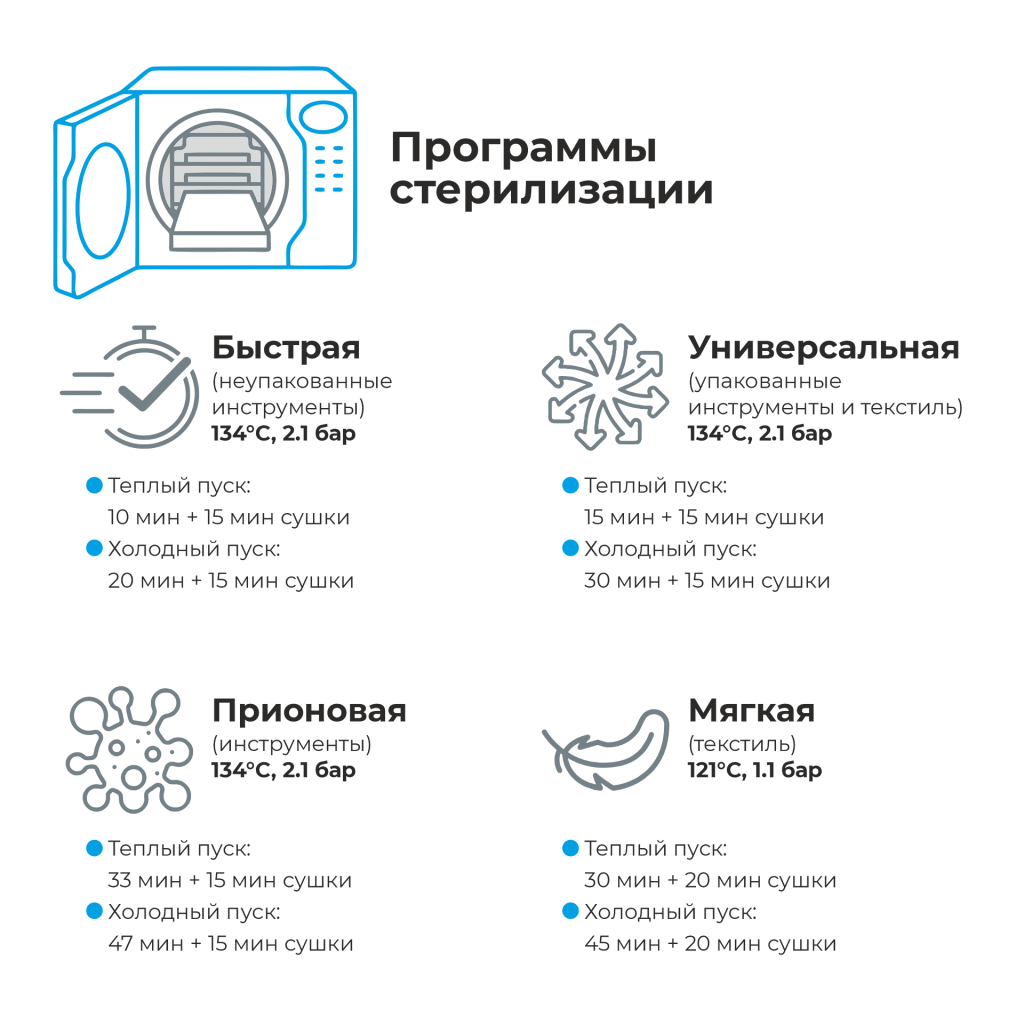 - Ускоренные программы стерилизации