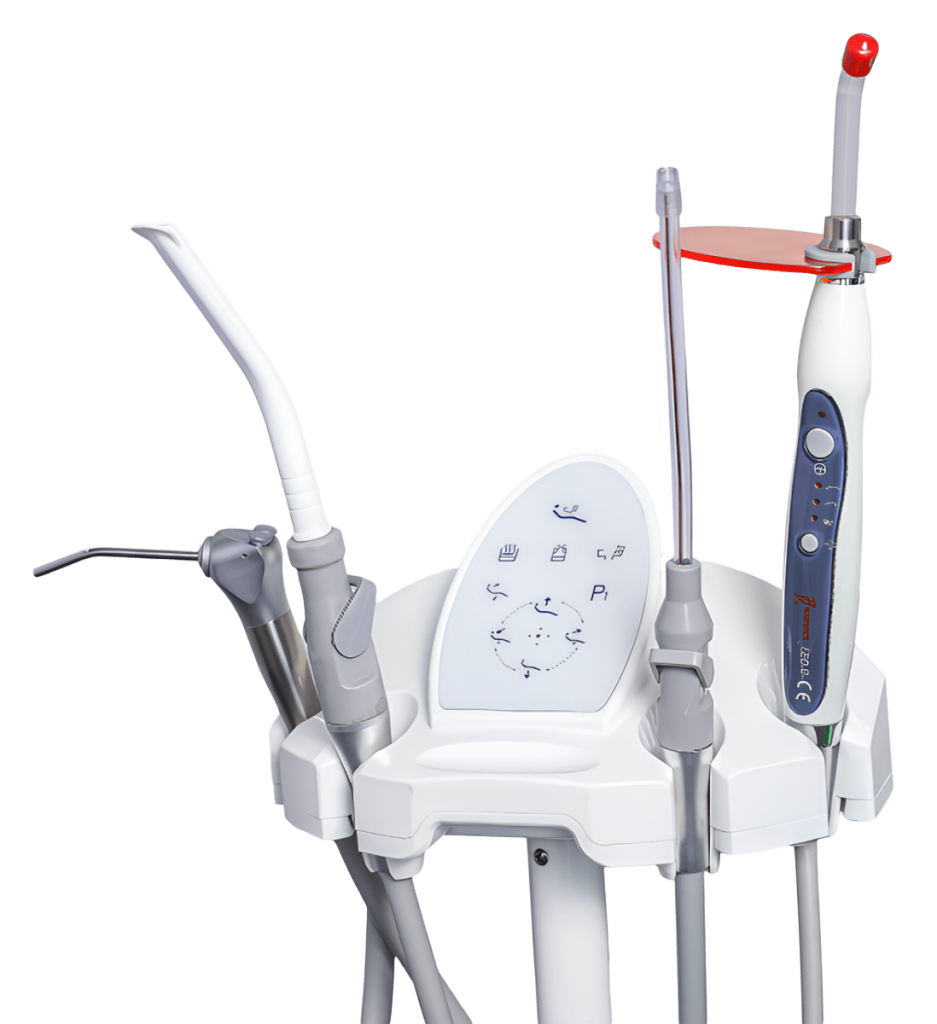 - Стоматологическая установка с нижней подачей и расширенной комплектацией, которая включает: