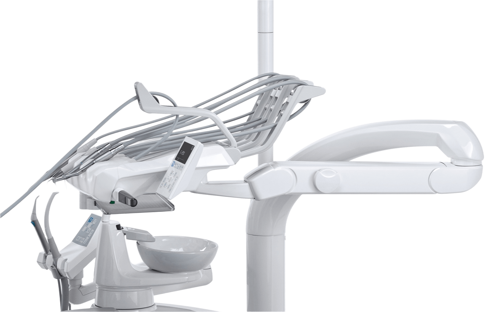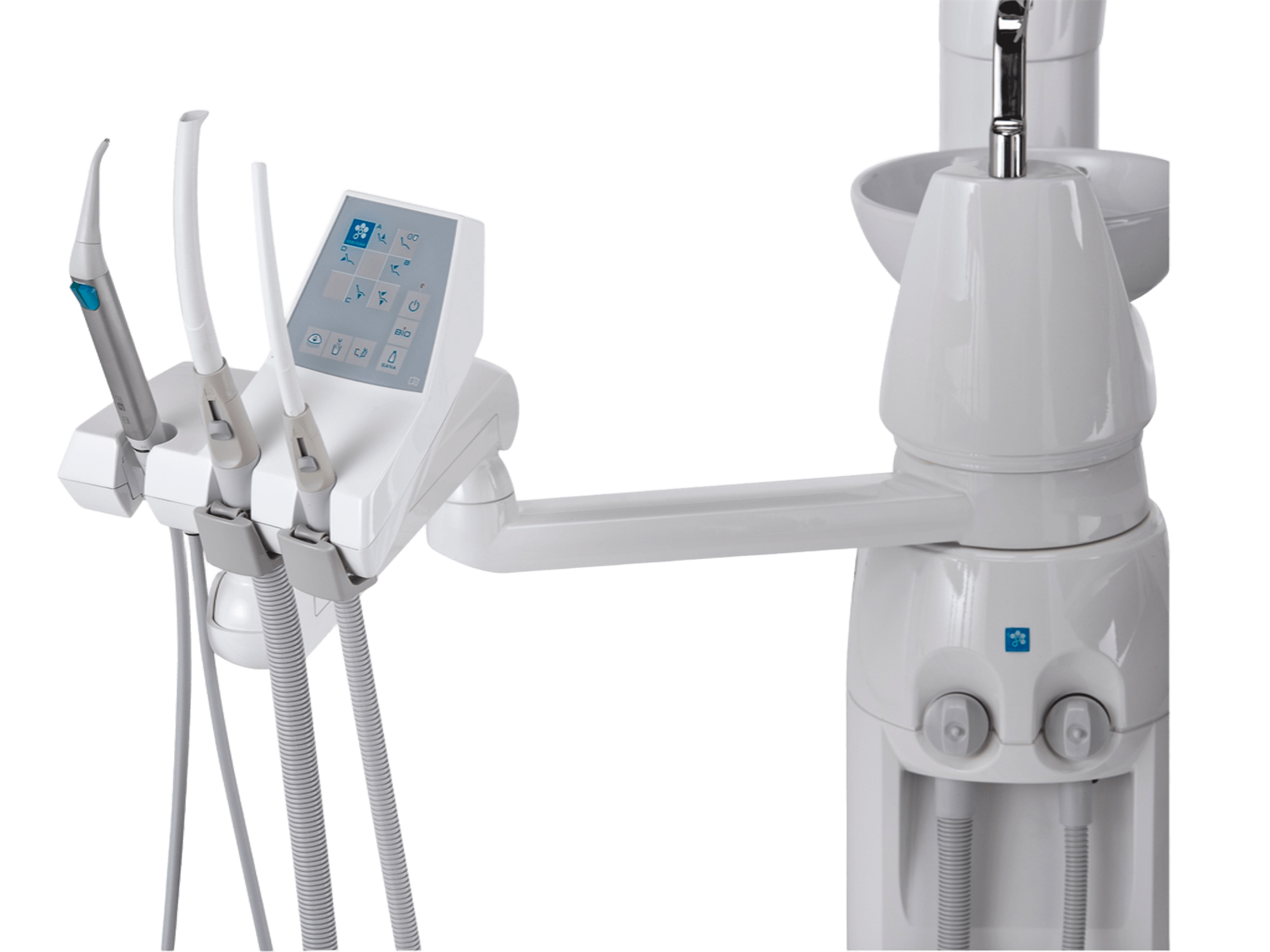- Возможность установки дополнительных инструментов (полимеризационная лампа, интраоральная камера C-U2, трёхфункциональный шприц-пистолет).