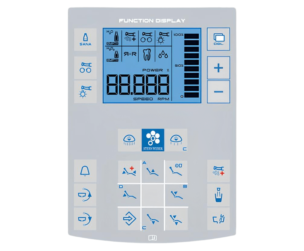 - Консоль врача оснащена сенсорным LCD-дисплеем для определения скорости и мощности инструментов.