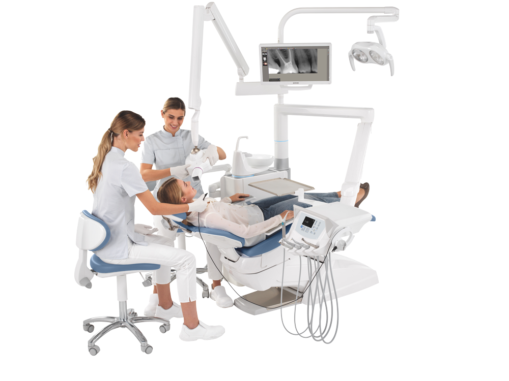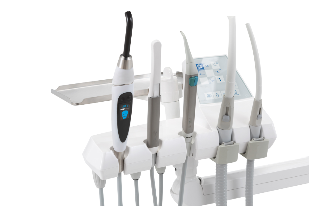 - Возможность установки дополнительных инструментов (полимеризационная лампа, интраоральная камера C-U2 HD).