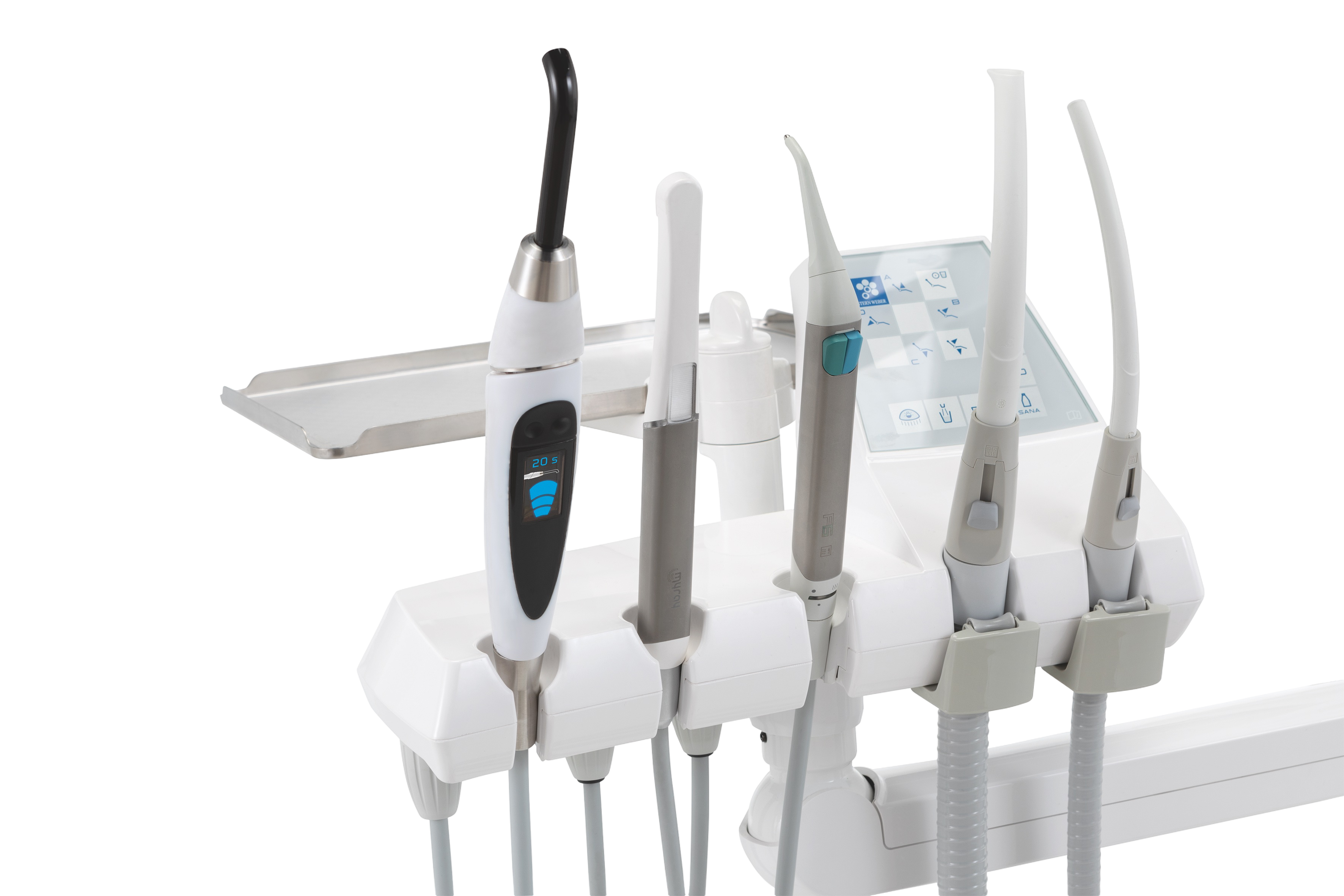 - Возможность установки дополнительных инструментов (полимеризационная лампа, интраоральная камера C-U2 HD).