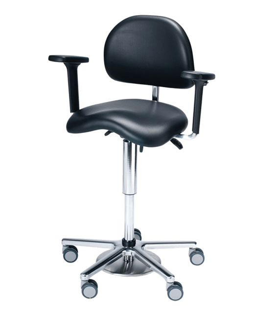 Модель отличается наличием подлокотников для упора обеих рук во время продолжительных и сложных хирургических вмешательств, что предотвратит перенапряжение и усталость. Вы можете выбрать стандартные или удлиненные подлокотники, а также подлокотники с обивкой. Оба варианта регулируются по высоте, длине, а также поворачиваются в зависимости от положения при работе.