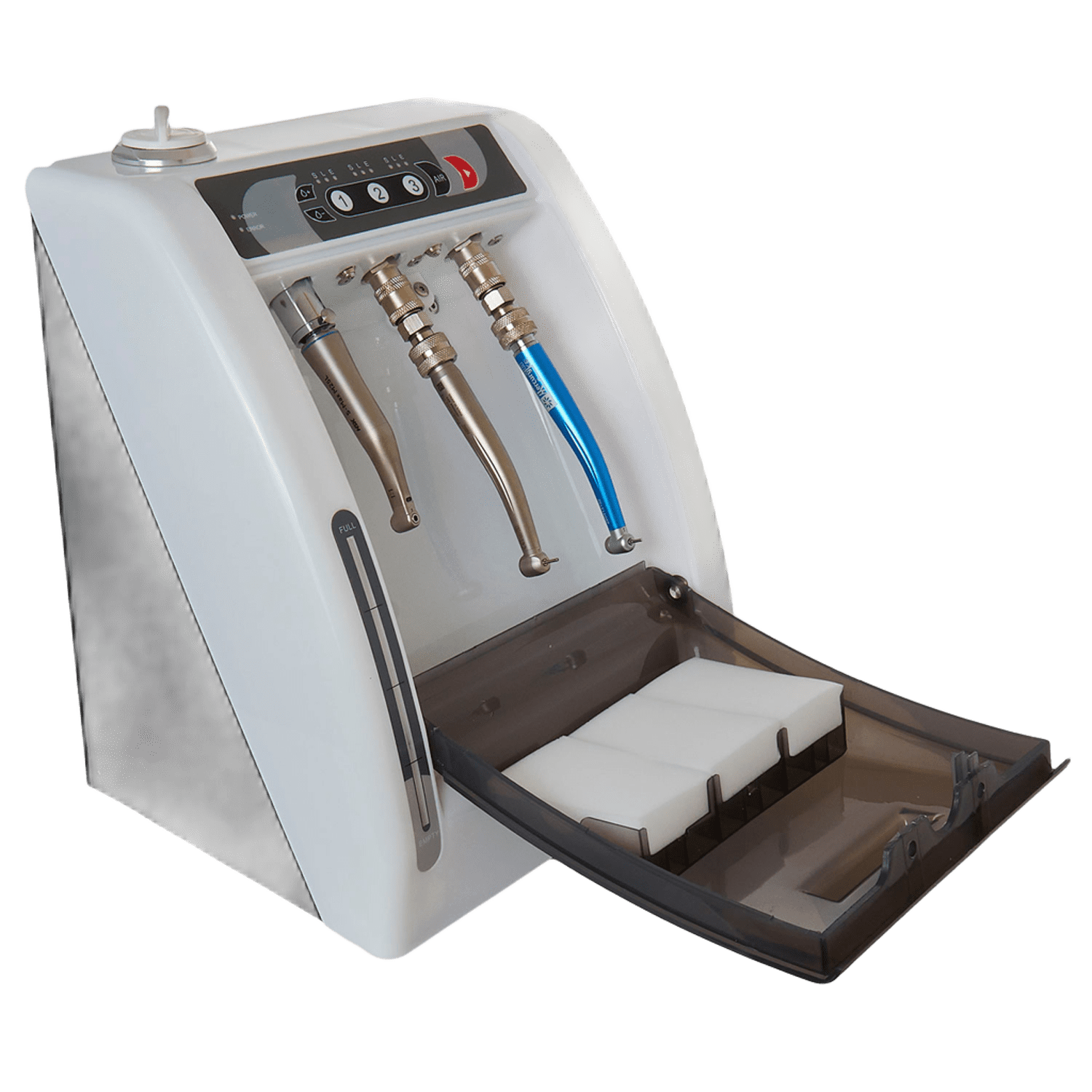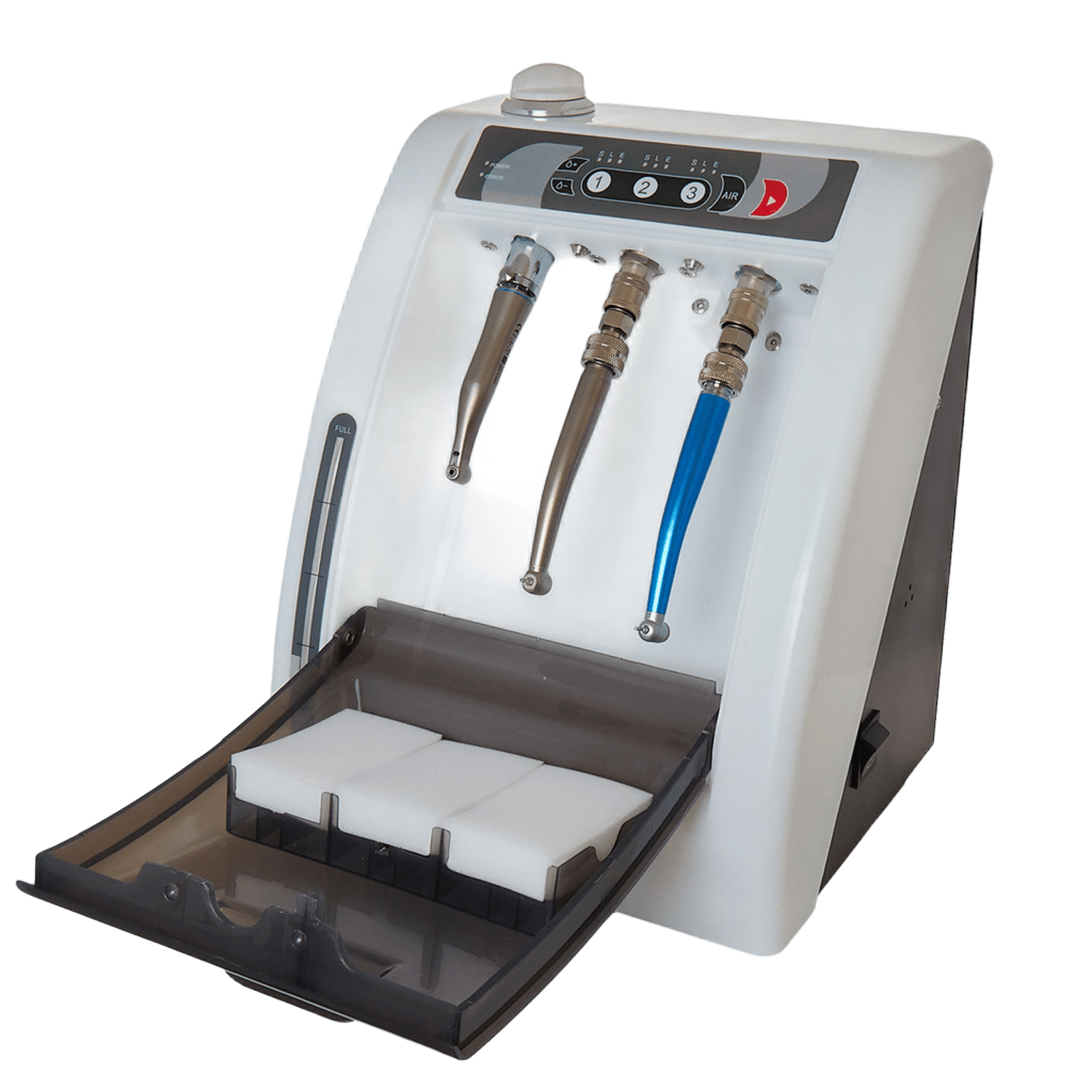LUB-900B обеспечивает эффективную очистку и смазку 3-x инструментов одновременно. В прибор помещаются 2 турбинных высокоскоростных наконечника и один из следующих инструментов: мотор, прямой или угловой наконечник. Процедура проводится перед стерилизацией в автоклаве для обеспечения длительной и стабильной работы наконечников, профилактики их износа.