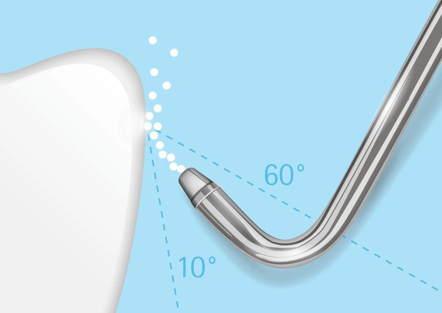 - KaVo PROPHYpearls: рабочий угол наклона 10°-60°. Благодаря более острому углу гранулы обрабатывают весь зуб целиком и обеспечивают максимальную эффективность гигиены.