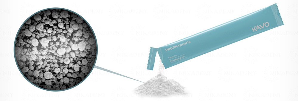 - Порошки KaVo PROPHYpearls содержат в себе сферические гранулы, которые позволяют получать оптимальную мощность очистки: круглая форма гранул обеспечивает большее количество контактных точек, чем стандартный порошок и, соответственно, очищает результативнее. Кроме того, благодаря отсутствию острых краев гранулы оказывают исключительно бережное воздействие на зубы.