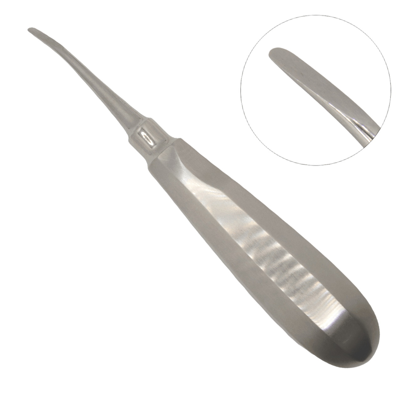 - Рабочая часть: Элеваторы прямые обычно имеют плоскую или слегка изогнутую рабочую часть, которая позволяет врачу поднять и отслоить зуб от альвеолярного отростка с минимальным повреждением окружающих тканей.