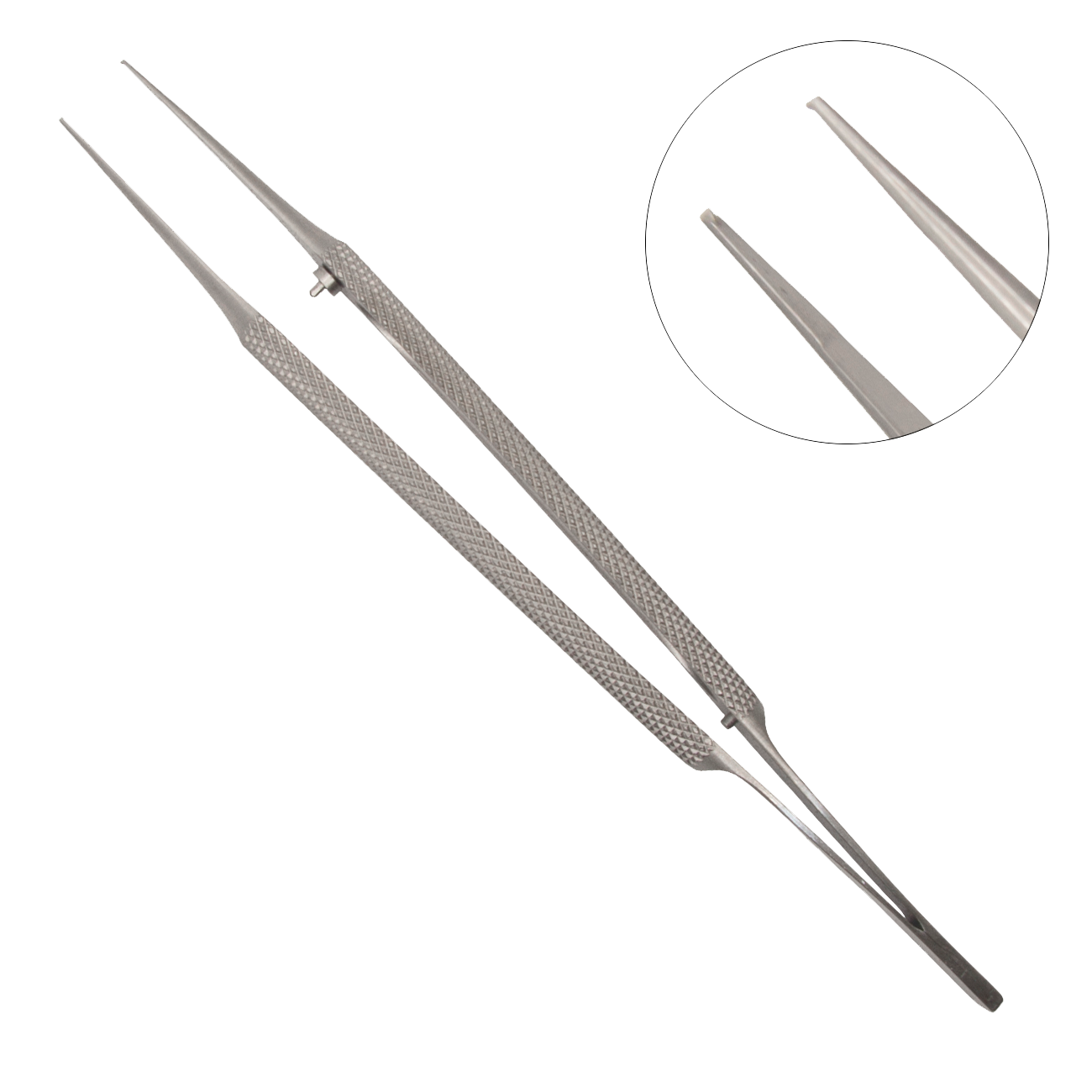 - Типы челюстей: Пинцеты имеют челюсти с зубцом, что обеспечивает надежный захват тканей. Зубец предотвращает соскальзывание тканей из захвата, что особенно важно при манипуляциях с плотными или скользкими тканями.