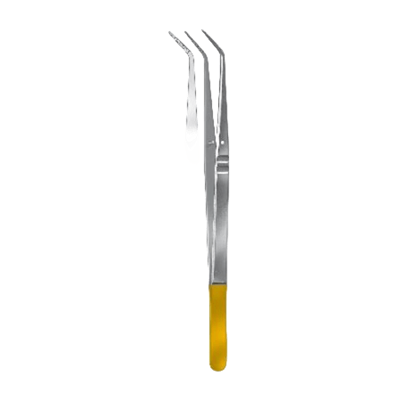 - Изогнутая форма: Изогнутая форма челюстей пинцетов позволяет врачу работать под углом, что особенно полезно при манипуляциях в глубоких или труднодоступных местах. Это улучшает обзор и доступ к рабочей зоне, повышая точность выполнения процедур.