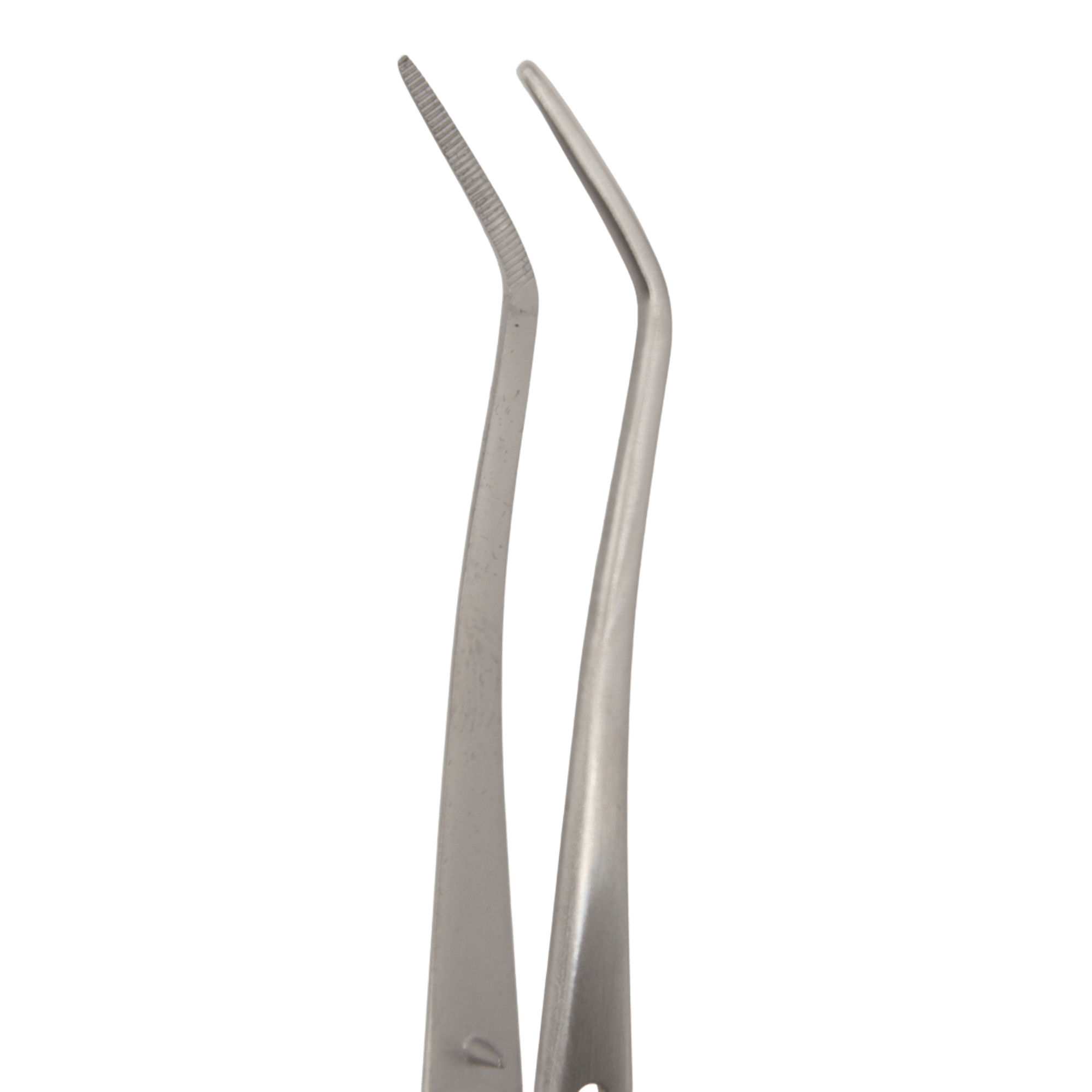 - Типы челюстей: Универсальные изогнутые пинцеты могут иметь различные типы челюстей - зубчатые или гладкие. Зубчатые челюсти обеспечивают надежный захват тканей или мелких предметов, предотвращая их соскальзывание. Гладкие челюсти минимизируют риск повреждения деликатных тканей.