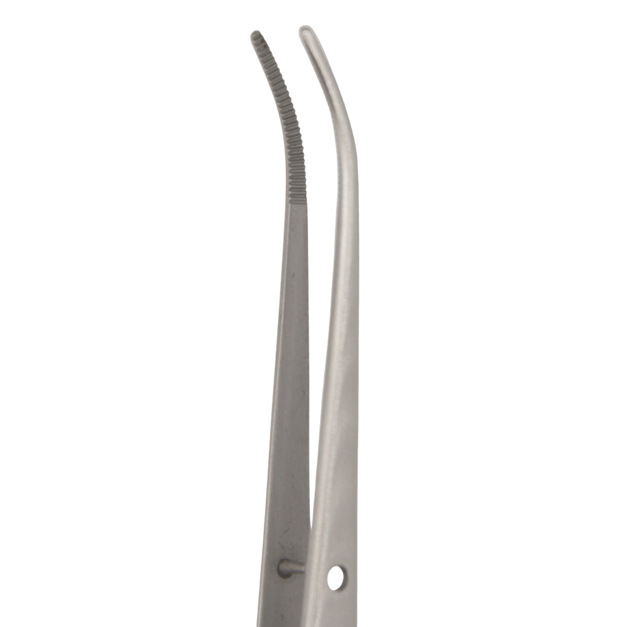 - Типы челюстей: Универсальные изогнутые пинцеты могут иметь различные типы челюстей - зубчатые или гладкие. Зубчатые челюсти обеспечивают надежный захват тканей или мелких предметов, предотвращая их соскальзывание. Гладкие челюсти минимизируют риск повреждения деликатных тканей.