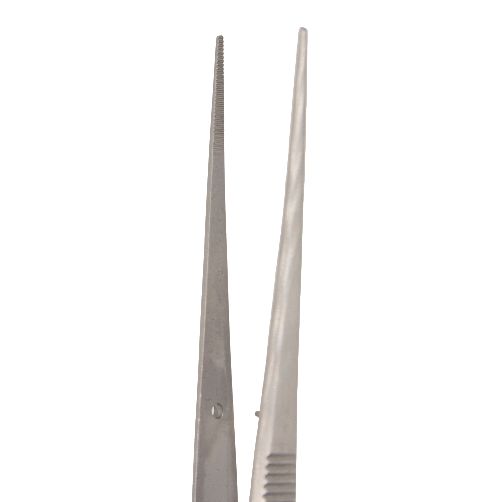 - Типы челюстей: Универсальные прямые пинцеты могут иметь различные типы челюстей - зубчатые или гладкие. Зубчатые челюсти обеспечивают надежный захват тканей или мелких предметов, предотвращая их соскальзывание, в то время как гладкие челюсти минимизируют риск повреждения деликатных тканей.