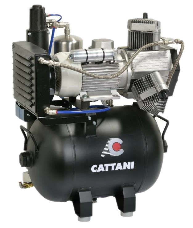 Компрессор стоматологический CATTANI на 3-4 установки , трехцилиндровый безмасляный, компрессор без кожуха, с осушителем, для обеспечения рабочих мест стоматологов.
