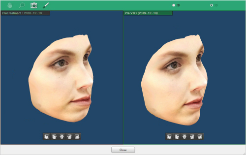 Функция морфинга и сравнения черт лица могут быть использованы как с 2D, так и с 3D-фотографиями. Поскольку 3D-фотография ближе к реальному лицу пациента, она действует как эффективное визуальное пособие во время консультации. Кроме того, стоматолог может использовать функцию морфинга и сравнения, чтобы убедиться, что ортодонтическое лечение пациента прогрессирует в соответствии с планом лечения.