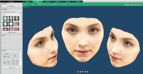 EzOrtho генерирует 3D-фотографию из фронтальных и боковых изображений пациента. С помощью 3D-фотографии пациента доктора могут визуализировать не только зубной ряд, но и мягкие ткани, так что виртуальный ортодонтический диагноз может быть поставлен на основе эстетических изменений пациента, а лечение может быть спланировано, глядя на лицо пациента под различными углами.